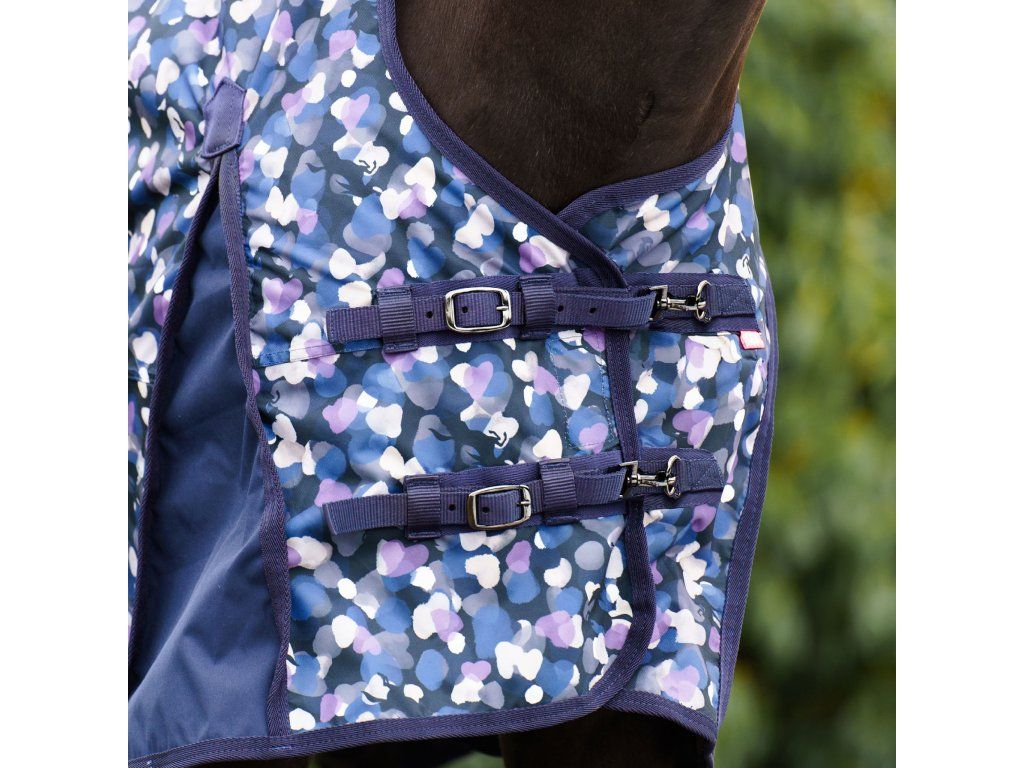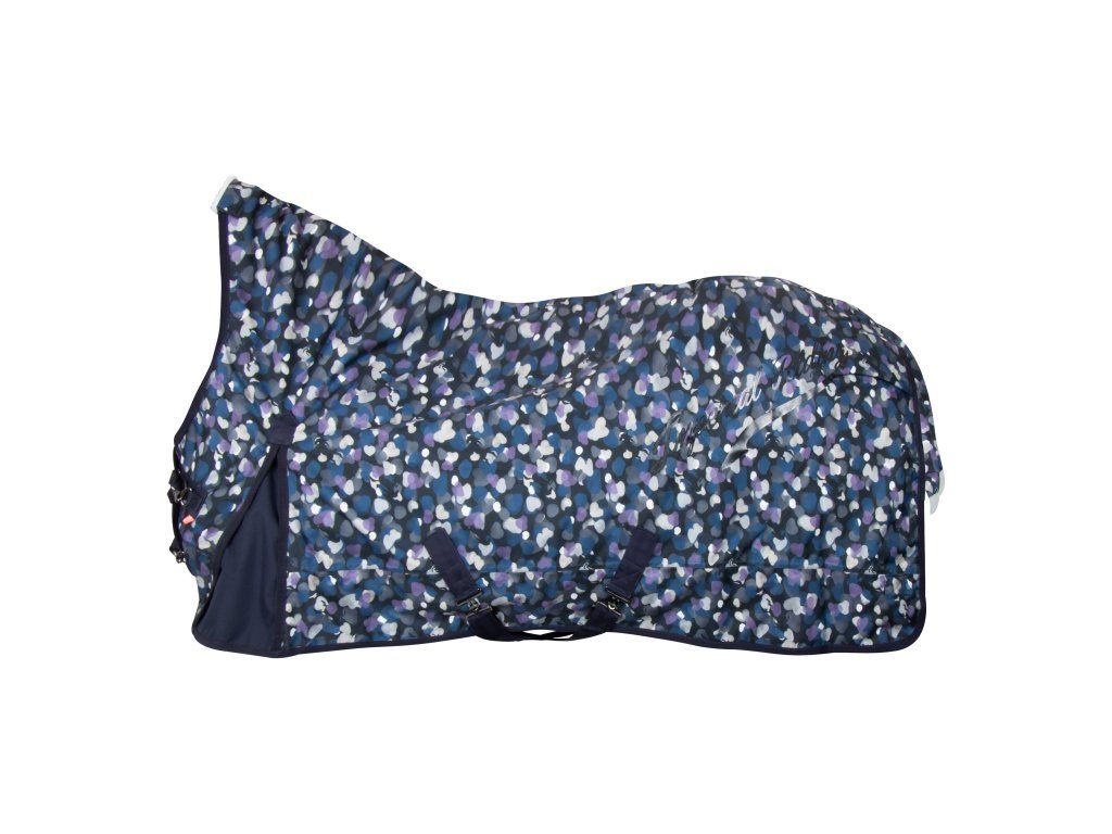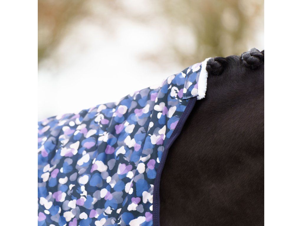 Deka je navržena s prodlouženým krkem pro maximální ochranu před větrem a vlhkostí. Měkké beránkové lemování eliminuje riziko odírání citlivých míst. Pohodlí a volnost pohybu zaručují anatomicky tvarované přední rozparky, zatímco křížové zapínání pod břichem a nastavitelné popruhy mezi zadními nohami udrží deku bezpečně na svém místě i při aktivním pohybu.